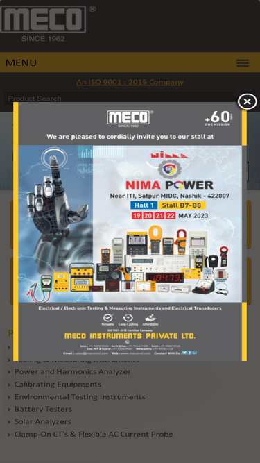 79%meco instruments is manufacturer of products relating to electrical, electronics test and measuring instruments, panel and switchboard instruments, power and harmonics analyzers, multifunction insturments, digital multimeters, power line transducers, analog and panel switchboard meters and digital clampemters.