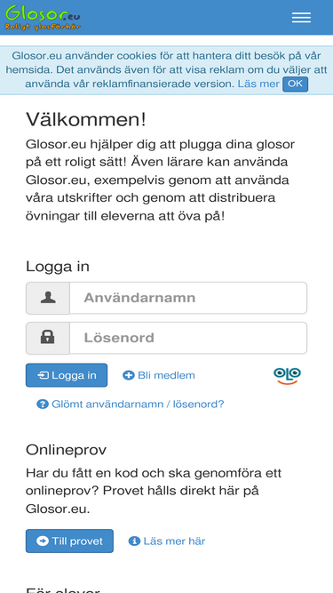 82%förhör dig på dina egna glosor på ett roligt sätt. skapa egna gloslistor eller använda de publika. glosor.eu är ett bra och roligt verktyg för att lära sig nya ord och glosor. engelska spanska tyska franska ryska med flera. helt gratis. - glosor.eu