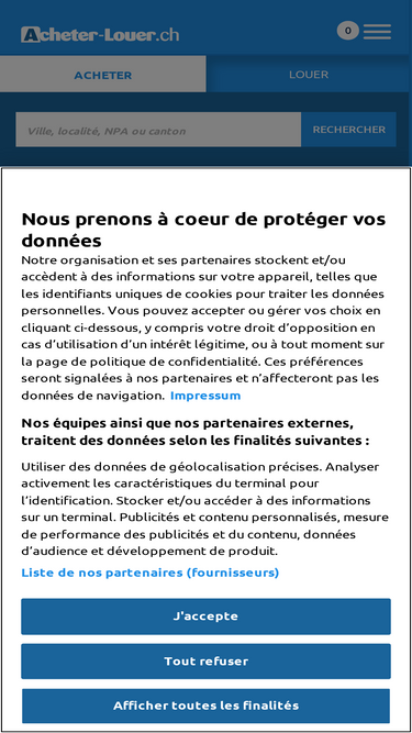 92%toutes les annonces immobilières à vendre et à louer, appartements, villas, maisons, terrains et immeubles sont sur acheter-louer.ch. nos annonces sont originales et actualisées pour mieux chercher et trouver votre propriété en suisse romande