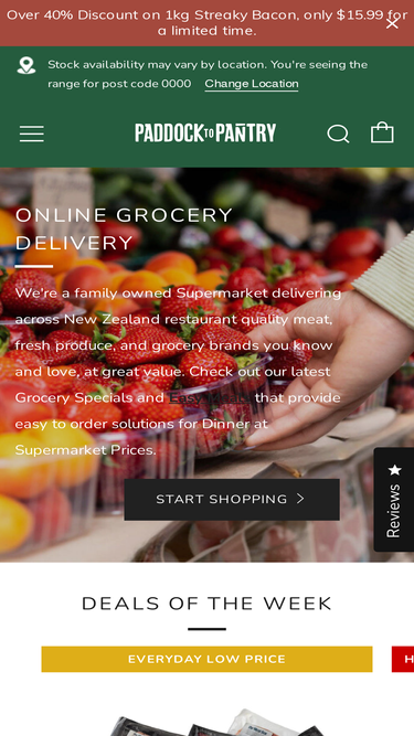 99%An Online Supermarket that delivers fresh quality Meat, Produce and well known grocery brands across New Zealand. Paddock to Pantry delivers you more; incredible freshness, great value, and we're 100% kiwi owned. Support local and choose Paddock to Pantry for Grocery Delivery NZ wide.