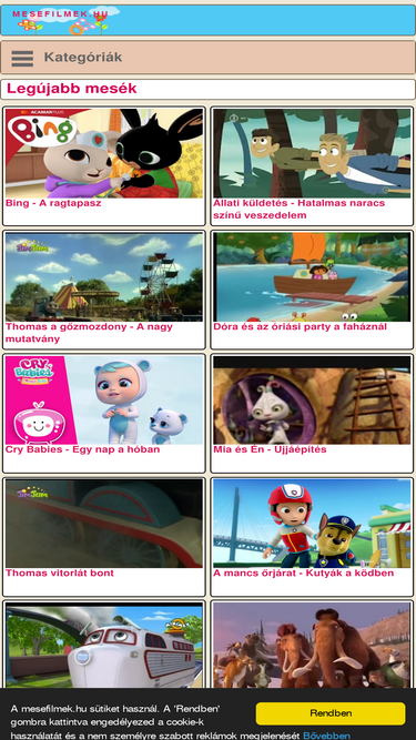 ha szereted a meséket akkor ez a te weboldalad! itt megtalálod a legújabb meséktől a legrégebbi rajzfilmekig az összeset amely mesefilm kategóriába tartozik, megnézhetsz előzeteseket, letölthetsz háttérképeket és posztereket.