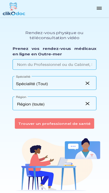 86%Prenez rendez-vous avec des professionnels de santé : consultations, téléconsultation et soins à domicile en France, Martinique, Guadeloupe et La Réunion.