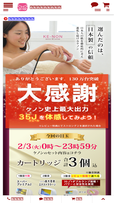80%楽天の全商品中、日本一の圧倒的なレビュー数(口コミ数)190,000件!Yahoo!ショッピング2020年上半期ランク全商品中、売上総合1位。安心の日本製!最新バージョン。付属のスーパープレミアムカートリッジなら、照射回数300万発(※Lv1)、Lv10でも50万発照射出来るので、届いてすぐに長く使えます。光美容器ならケノン KE-NON