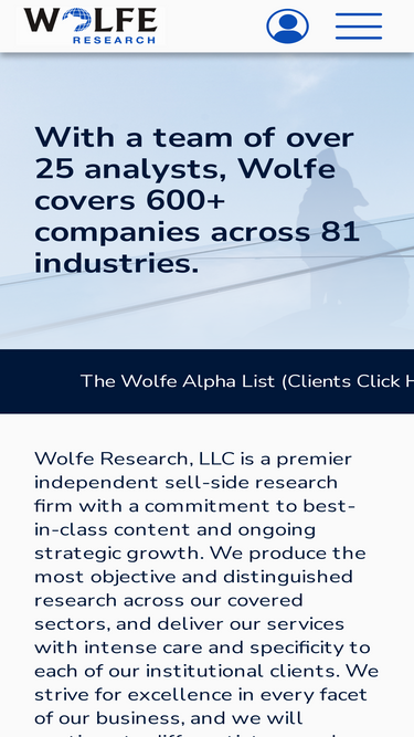 98%Wolfe Research, LLC is a premier independent sell-side research firm with a commitment to best-in-class content and ongoing strategic growth.
