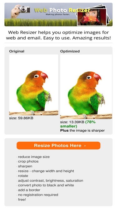 75%free online tool to optimize images for websites and email. crop, resize, add a border and sharpen your photos easily.