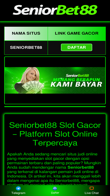 100%Seniorbet88 adalah sebuah situs slot online yang menawarkan berbagai jenis permainan, dengan fokus utama pada slot online atau yang sering disebut sebagai slot gacor
