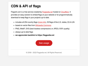 95%free service providing an easy solution to embed flags on your website or for programmatically download to keep flags in your projects up-to-date.
