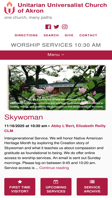 91%Whoever you are and wherever you have come from, the Unitarian Universalist Church of Akron welcomes you!