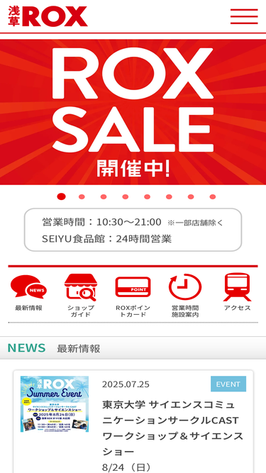 82%地域と人とのふれあいが創り出すにぎわいの空間:浅草roxにはファッション、コスメ、雑貨、グルメなどの専門店、温浴施設、フィットネス、アミューズメントスペースなど充実の店舗が勢揃い。みなさまのご来店をお待ちしております。