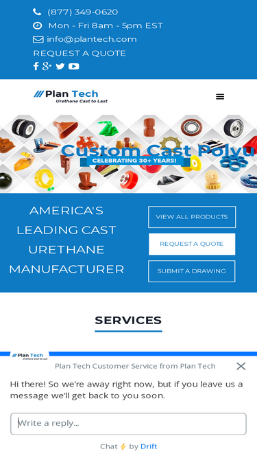 What is the difference between Ester & Ether Urethane? Our primary choice of prepolymer material is Ether-based due to its superior physical properties above 90A hardness and that it does very well in wet or cold conditions. Ester urethane based products do very well against abrasion resistance and handle heat and chemicals better than ether’s but do very poorly against moist humid conditions. At Plan Tech we stock all durometers of each base polyurethane material. What is the difference between injection urethane vs hot-cast urethane? Hot cast urethane products are often handmade and an easy way to reproduce medium to high volume parts with physical properties superior to injection molding for a lot less in up-front tooling cost. Do you have high rebound urethane? Yes, we carry low and high rebound urethane for any applications in any hardness or color. How does spin casting work? By using rotational force we are able to produce parts complete with no secondary operations. Our biggest demand for spin casting is for precision urethane sheets with tight tolerances. What are your compression molding abilities? Sprockets, gaskets and bushings can all be easily reproduced via compression molding with parts up to […]