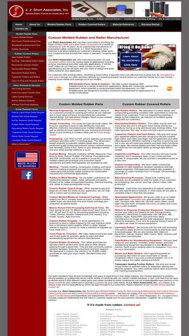 91%j.j. short associates, inc. is a custom molded rubber and roller manufacturer that can help you with custom molded rubber parts, custom rubber covered rollers, replacement oem rubber rollers, laminator rollers, rubber parts, rubber rollers, rubber caps, and oem molded rubber parts.