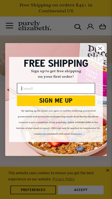 100%Purely Elizabeth Blueberry Walnut Superfood Oatmeal with Collagen is made with bovine collagen, organic oats, dried blueberries and crunchy walnuts. Our gluten-free oatmeal recipe is made with superfood grains and seeds for a delicious taste and texture.