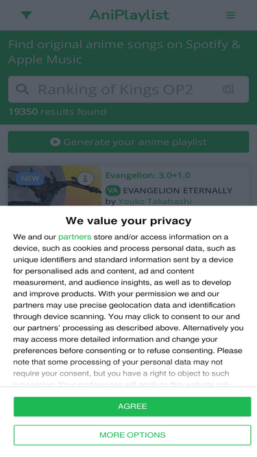 AniPlaylist helps you find your favorite original anime openings, endings, OST on Spotify & Apple Music.