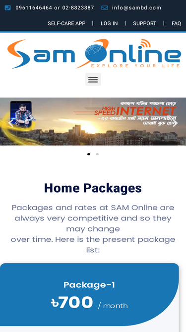 97%🌐 ইন্টারনেট প্রব্লেম সংযোগ না থাকলে বা সমস্যা হলে আমাদের জানিয়ে দিন। আরো জানুন ⚡ স্পিড প্রব্লেম স্পিড কম মনে হলে রাউটার চেক করুন অথবা আমাদের হেল্পডেস্কে জানান। আরো জানুন 🆕 নিউ কানেকশন নতুন সংযোগের জন্য অনলাইন আবেদন করুন সহজে। আরো জানুন 💳 বিলিং সিস্টেম বিল চেক করুন, পেমেন্ট করুন এবং ইতিহাস দেখুন। আরো জানুন 💬 লাইভ চ্যাট বট যেকোনো সমস্যা হলে আমাদের চ্যাট বটে লিখুন, ২৪/৭ কাষ্টমার সাপোর্ট আরো জানুন 📞 কন্টাক্ট ডিটেলস আমাদের ফোন নম্বর, ঠিকানা এবং ইমেইল দেখুন। আরো জানুন 📡 রাউটার পজিশন রাউটার কোথায় রাখলে ভালো স্পিড পাওয়া যায় জেনে নিন। আরো জানুন 📶 ফ্রিকোয়েন্সি লস সিগন্যাল কম পেলে আমাদের নির্দেশনা অনুসরণ করুন। আরো জানুন 🔼 আপগ্রেড / প্যাকেজ পরিবর্তন আপনার প্রয়োজন অনুযায়ী নতুন প্যাকেজে আপগ্রেড করুন। আরো জানুন 🗺️ কভারেজ এরিয়া আপনার এলাকায় আমাদের কাভারেজ আছে কিনা দেখুন। আরো জানুন 📋 প্যাকেজ লিস্ট আমাদের সব প্যাকেজ এক নজরে দেখুন। আরো জানুন 💸 রিফান্ড / ডিসকানেকশন রিফান্ড বা সংযোগ বিচ্ছিন্নের নিয়মাবলি দেখুন। আরো জানুন ❓ FAQ সেকশন সাধারণ প্রশ্ন ও উত্তর দেখুন এক জায়গায়। আরো জানুন 👤 স্যাম সেলফকেয়ার আপনার একাউন্ট নিজেই ম্যানেজ করুন সেলফকেয়ার থেকে। আরো জানুন × ইন্টারনেট প্রব্লেম হলে করণীয় ✅ রাউটারটি ৩০ সেকেন্ড বন্ধ রেখে আবার চালু করুন ✅ LAN/WAN ক্যাবল সঠিকভাবে লাগানো আছে কিনা অনু ডিভাইস চেক করুন , কোনো ঢিলা বা ছেঁড়া আছে কিনা দেখে নিন, ক্যাবল খুলে আবার কানেক্ট করুন ✅ সিগন্যাল চেক করুন: WiFi-এর সিগন্যাল কতটুকু পাচ্ছেন তা দেখুন। রাউটারটি ঘরের মাঝামাঝি জায়গায় রাখলে সিগন্যাল ভালো হয়, রাউটার ঘড়ের কোণে রাখা থেকে বিরত থাকুন ✅ স্পিড চেক করুনঃ fast.com ✅ সমস্যা থাকলে Live Chat করুনWhatsApp ✅ ডিভাইস রিস্টার্ট করুন: মোবাইল বা কম্পিউটার রিস্টার্ট করে আবার কানেক্ট করুন। ✅ রিমোট সাপোর্ট: সমস্যা জটিল হলে আমাদের ইঞ্জিনিয়ার টিম রিমোটলি (TeamViewer/AnyDesk ইত্যাদি মাধ্যমে) চেক করবে ✅ ফিল্ড টেকনিশিয়ান: যদি রিমোট সাপোর্টে সমাধান না হয়, তবে প্রয়োজন অনুযায়ী আমাদের টেকনিশিয়ান টিম সরাসরি গিয়ে সমস্যার সমাধান করবে × স্পিড প্রব্লেম হলে করণীয় ✅ রাউটারের অবস্থান মাঝামাঝি স্থানে রাখুন ✅ বেশি ডিভাইস কানেক্টেড কিনা চেক করুন ✅ রাতের সময় স্পিড কম থাকলে এটি নরমাল ✅ রাউটার বাধাহীন জায়গায় রাখুন ✅ স্পিড কম লাগলে প্রথমে আপনার রা