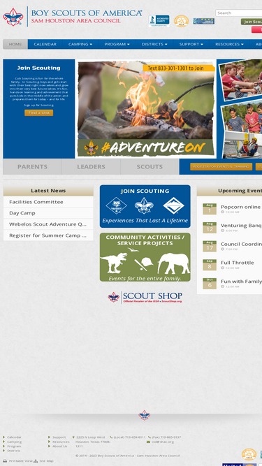 100%Sam Houston Area Council, BSA, serves nearly 50,000 youth in 16 counties southeast Texas area through dedicated service and leadership of nearly 18,000 adult volunteers. Scouting is completely funded by the generosity of our local communities.