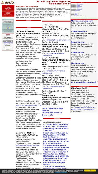 82%sammeln.at - die plattform für sammler, antiquitäten- und flohmarkt-freunde: termine, links, forum, bücher und kleinanzeigen zu allen sammelgebieten.