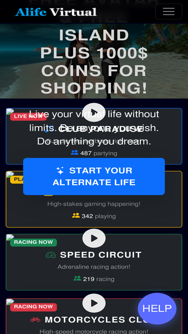 74%Search and discover shops, clubs, events, games, and land for sale in Alife Virtual. Get your free avatar and 256x256m island. Zero cost, unlimited creativity.