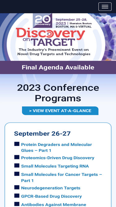 60%The Discovery on Target conference is the industry’s preeminent event on novel drug targets and technologies for drug discovery professionals.