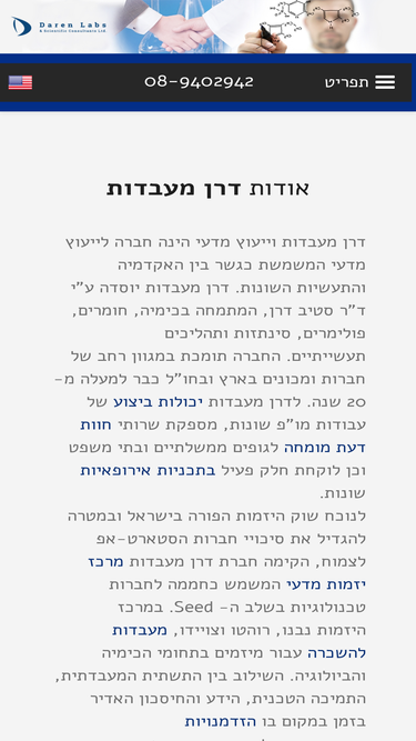 דף הבית של חברת דרן מעבדות וייעוץ מדעי , העוסקת בביצוע מחקר ופיתוח ובהשכרת מעבדות מחקר במודל ייחודי המקדם חברות סטארטאפ ומסייע להן להשיג את יעדיהן במהירות ובקלות יחסית