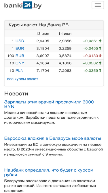 71%курсы валют банков минска и других городов беларуси - курсы обмена валюты по всем отделениям банков беларуси. кредиты и вклады в банках беларуси, а также рейтинг банков с отзывами и подробной информацией. финансовые калькуляторы, мнения экспертов и экономические новости тут!