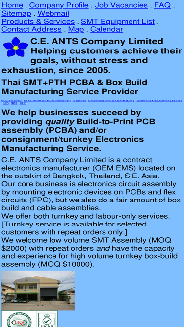 100%c.e. ants company limited is the relaiable contract electronics manufacturer in thailand. let us worry about manufacturing (electronics assembly) so you can concentrate on design (product development) and marketing (business development).