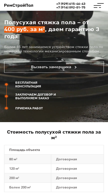 99%Вас интересует сколько стоит квадратный метр стяжки в квартире или доме? Цена работы от РемСтройПол? Мы даём 3-х летнюю гарантию на наши работы.