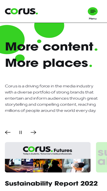 100%Corus is a driving force in the media industry with a diverse portfolio of strong brands that entertain and inform audiences through great storytelling and compelling content, reaching millions of people around the world every day.