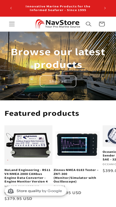 NavStore is your online source for NMEA 0183 interfacing devices, NMEA 2000 sensors, displays and interfaces. We also have a great deal of experience in the areas of marine computers, displays and software. We also supply select anchors, docks and other marine accessories.