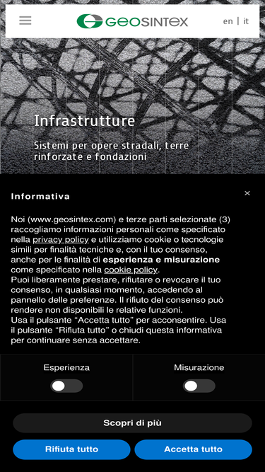 100%Geosintex propone un'ampia gamma di prodotti geosintetici per i settori dell’ingegneria civile, ambientale, geotecnica, idraulica e marittima.