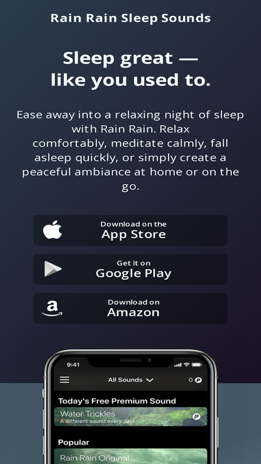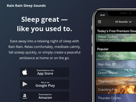 96%Sleep, study, relax, and meditate to the sounds of rain, water, fire, appliances, and more, with Rain Rain Sleep Sounds, free on iOS and Android.