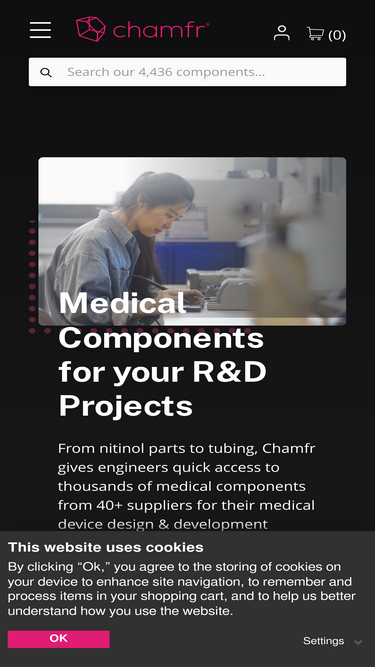 80%Chamfr gives engineers quick access to thousands of medical device parts, components, equipment & tools from hundreds of suppliers for their design & development projects. Free CoC's included in every order.