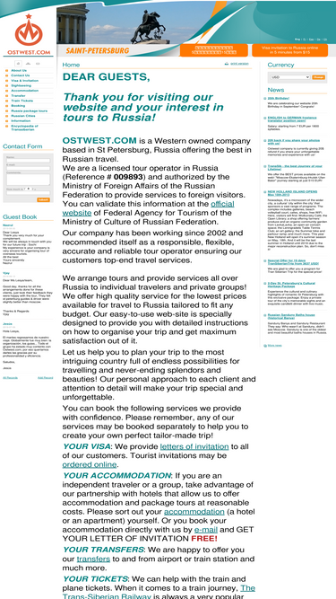 100%ost-west kontaktservice of st. petersburg russia offers individual and group tours. this german ran company provides their clients with russian visas - tourist and business, registration, accommodation and guided tours.