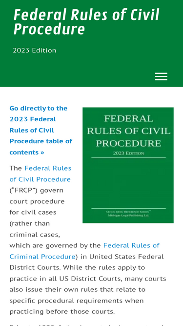 These are the 2024 Federal Rules of Civil Procedure. Click on any rule to read it. Use internal cross references for easy navigation.