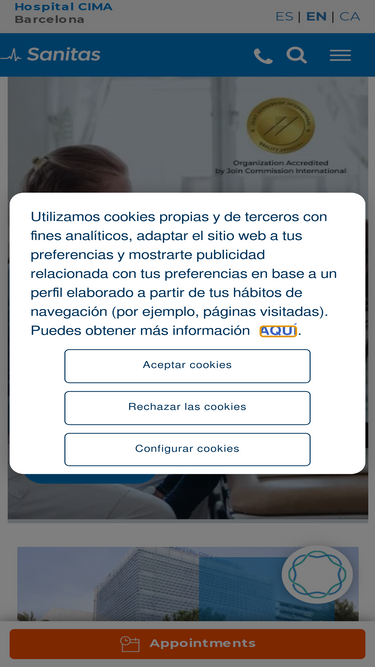 88%sanitas offers you the most prestigious medical service at the hospital cima barcelona. all medical specialties. professional staff find out!