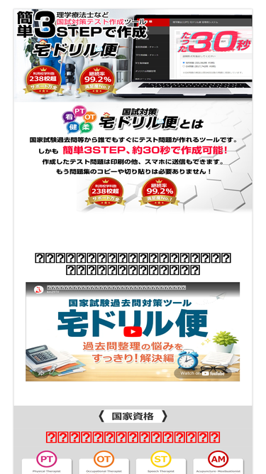 64%理学療法士/作業療法士/看護師/柔道整復師/はり師きゅう師/診療放射線技師での国家試験対策、健康運動実践指導者の試験対策に最適な教員用問題作成ソフト、学生向けにはスマートフォン用アプリを紹介します。