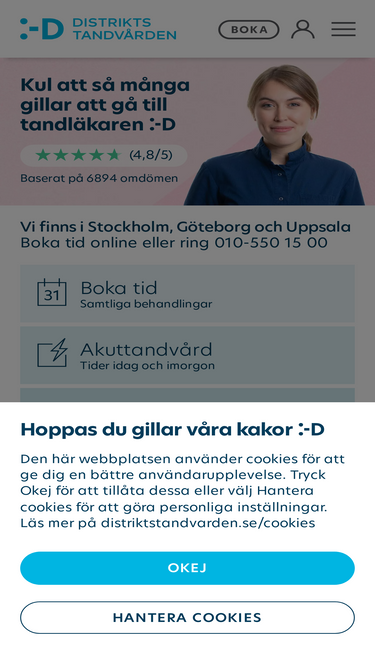 Tandvårdskedjan med över 40 kliniker i Stockholm, Göteborg och Uppsala. ✓ Tider samma dag ✓ Öppet dag, kväll och helg ✓ 4.8/5 baserat på över 10 000 omdömen