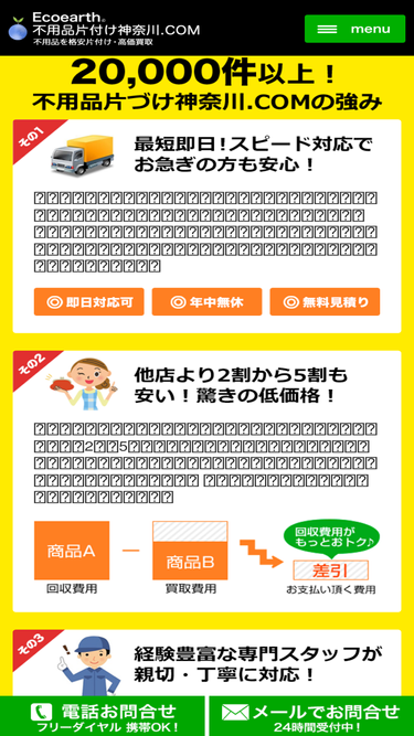 79%横浜市の不用品回収業者と比べてお得! 不用品・粗大ごみの処分にお困りならエコアースへ。ご利用件数は合計2万件以上! 格安片付けと高価買取で選ばれています。不用品が大量にある場合も定額パックなら安心! まずは無料見積りを。横浜市ほか神奈川県全域対応。