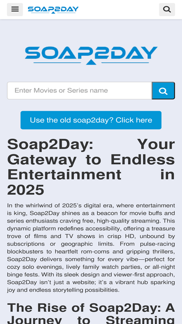 87%The official SOAP2DAY website. Watch free movies and TV series online with SOAP2DAY; no need to use soapgate.org or soap2day.to. Try it now for free—no registration needed!