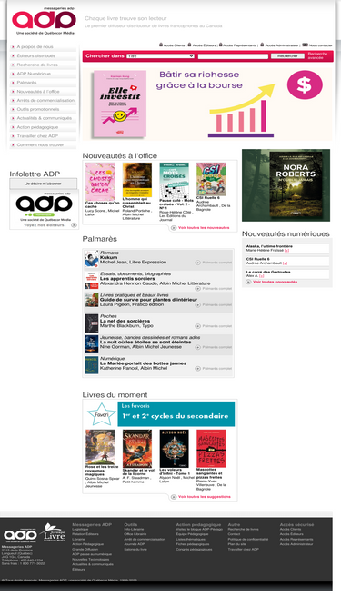 messageries adp, premier diffuseur et distributeur de livres francophones au canada, québec. diffusion - distribution de plus de 160 éditeurs.