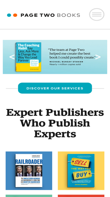81%Get to Know Page Two At Page Two, we’re different from other publishers. We offer a faster path to market, more creative control, and deep engagement in your launch strategy. Our co-founders, Jesse Finkelstein and Trena White, have a combined forty years of experience in the industry.