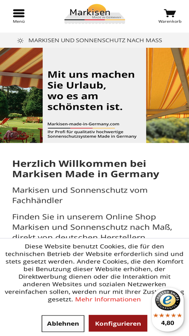 VIelen Dank für Ihr Interesse an unserem Onlineshop Markisen made in Germany, für Fragen stehen wir Ihnen gerne zur Verfügung. Datenschutz wird bei…