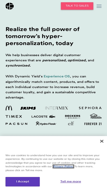98%Dynamic Yield's ExperienceOS helps businesses deliver digital experiences that are personalized, optimized, and synchronized.