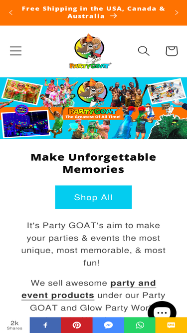 90%Party GOAT - make your parties the Greatest Of All Time! View our Party Guide for Epic party ideas, themes & supplies. Buy crazy party products - Jello Wrestling mix, Mud & Instant slime, Glow in the Dark Party Supplies, Black lights for neon parties. Great fundraising ideas for fundraisers & fun runs!