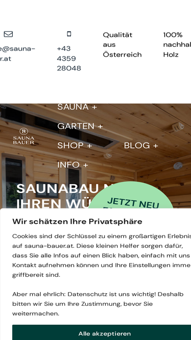 87%Sauna nach Maß konfigurieren. Für alle, die bei der Traumsauna keine Kompromisse eingehen wollen. Wir bauen individuelle Saunas nach Maß.