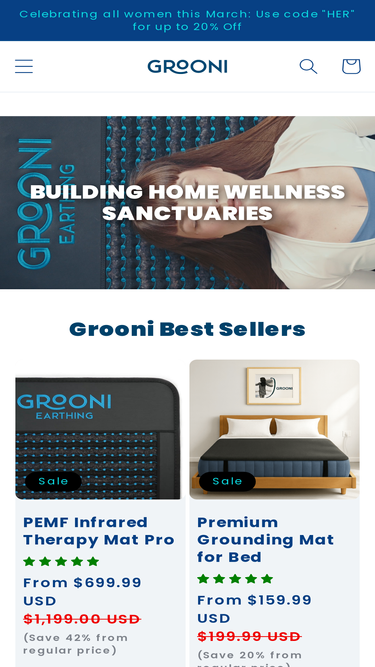 90%Grooni Earthing is a leading online store specializing in high-quality earthing and grounding products. Our collection includes grounding mats, organic cotton sheets, and PEMF therapy mats designed to help users improve sleep, reduce inflammation, and enhance natural wellness by reconnecting with the Earth's energy.