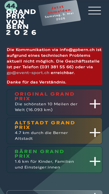 63%Der 44. Grand-Prix von Bern findet am 9. Mai 2026 statt