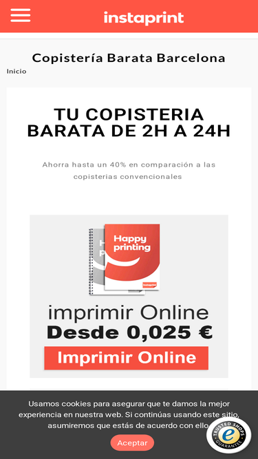 98%Somos tu mejor Imprenta barata online 24h con fotocopias baratas en Barcelona y entregas en 24h en toda España.