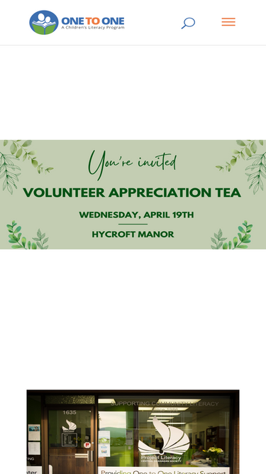 84%one to one is a unique children's literacy program which provides free one-to-one tutoring by trained volunteers to elementary school students.