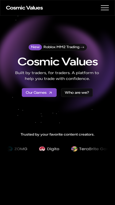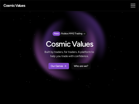 58%Cosmic Values is a trusted Roblox value list platform with real-time trading values for Pet Simulator, Blox Fruits, Grow a Garden, and more. Trusted by millions of players, our platform gives you the tools to make trading simpler.