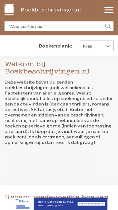 68%sinds 2005 vind je op boekbeschrijvingen een uitgebreid overzicht van duizenden boeken en schrijvers. speciaal aandacht wordt besteed aan de volgorde van series.